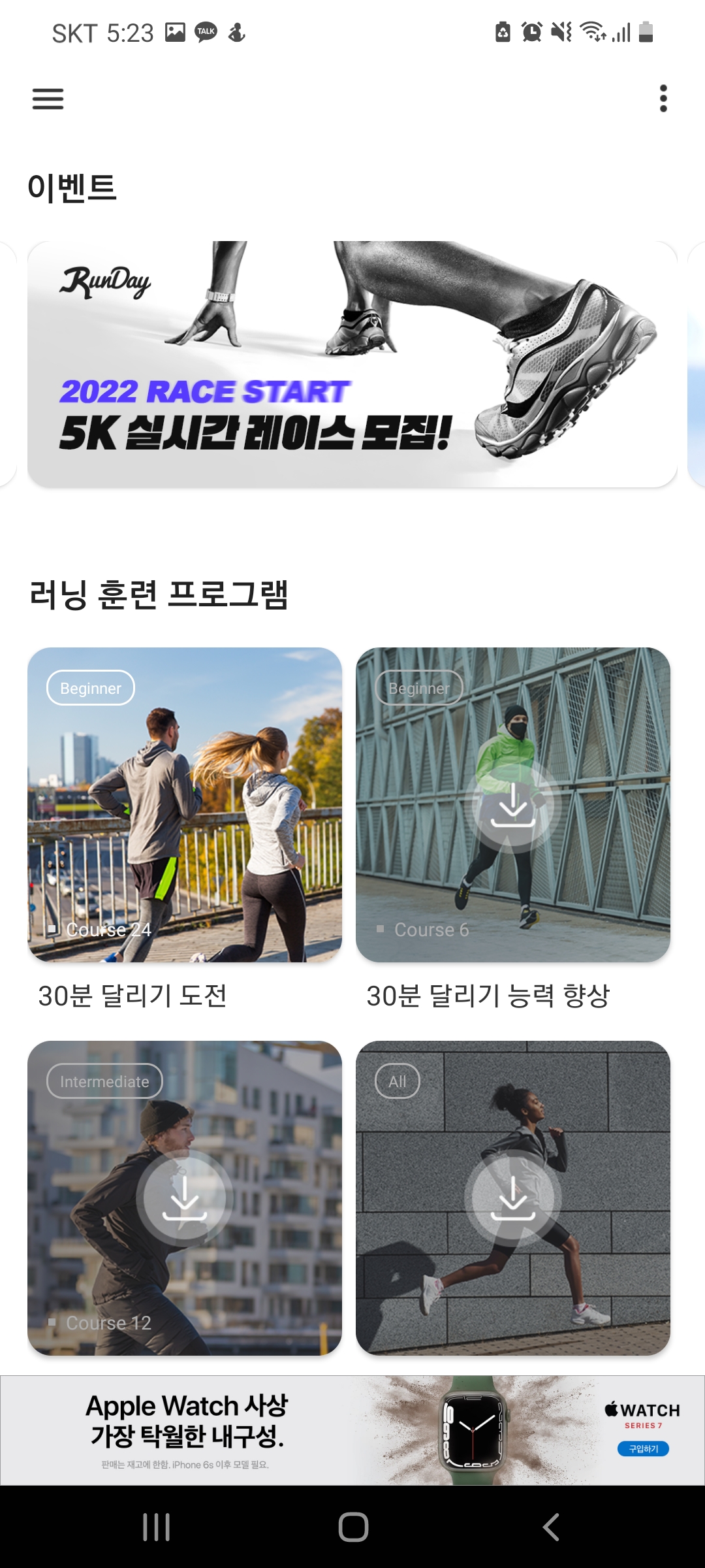 (참고로 그림 내의 핏데이는 런데이의 트레이닝 버전 앱이다.)