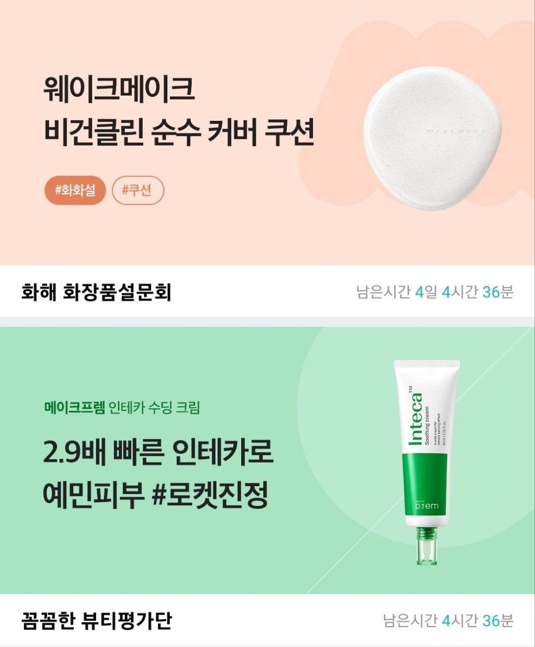 그리고 선정된 인원에게만 제품을 제공하는 이벤트를 진행한다. 바로 화장품 샘플을 증정 받고 설문에 응답하는 '화해 화장품 설문회(화화설)'와 화장품 정품을 받은 뒤 꼼꼼하게 리뷰를 남기는 '꼼꼼한 뷰티평가단(꼼평단)'이다.