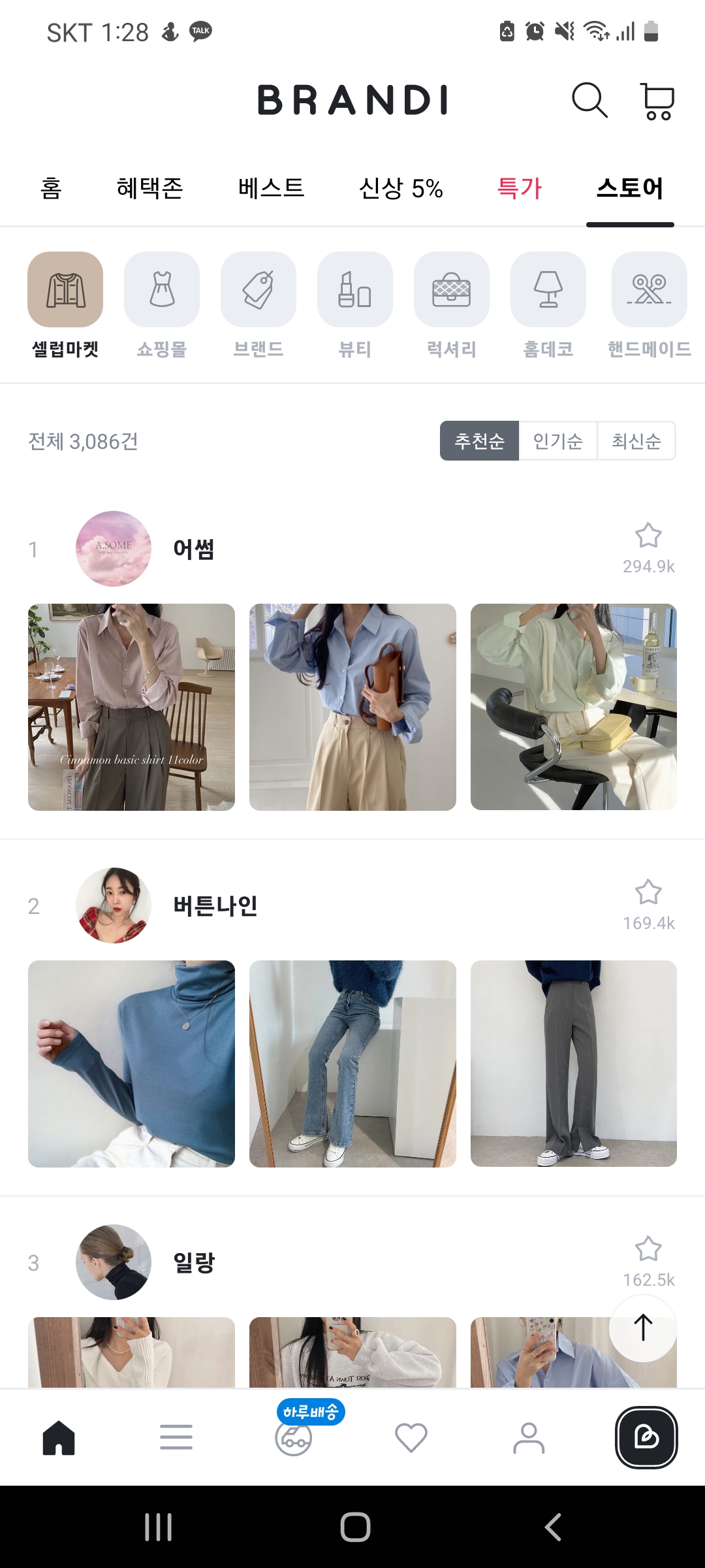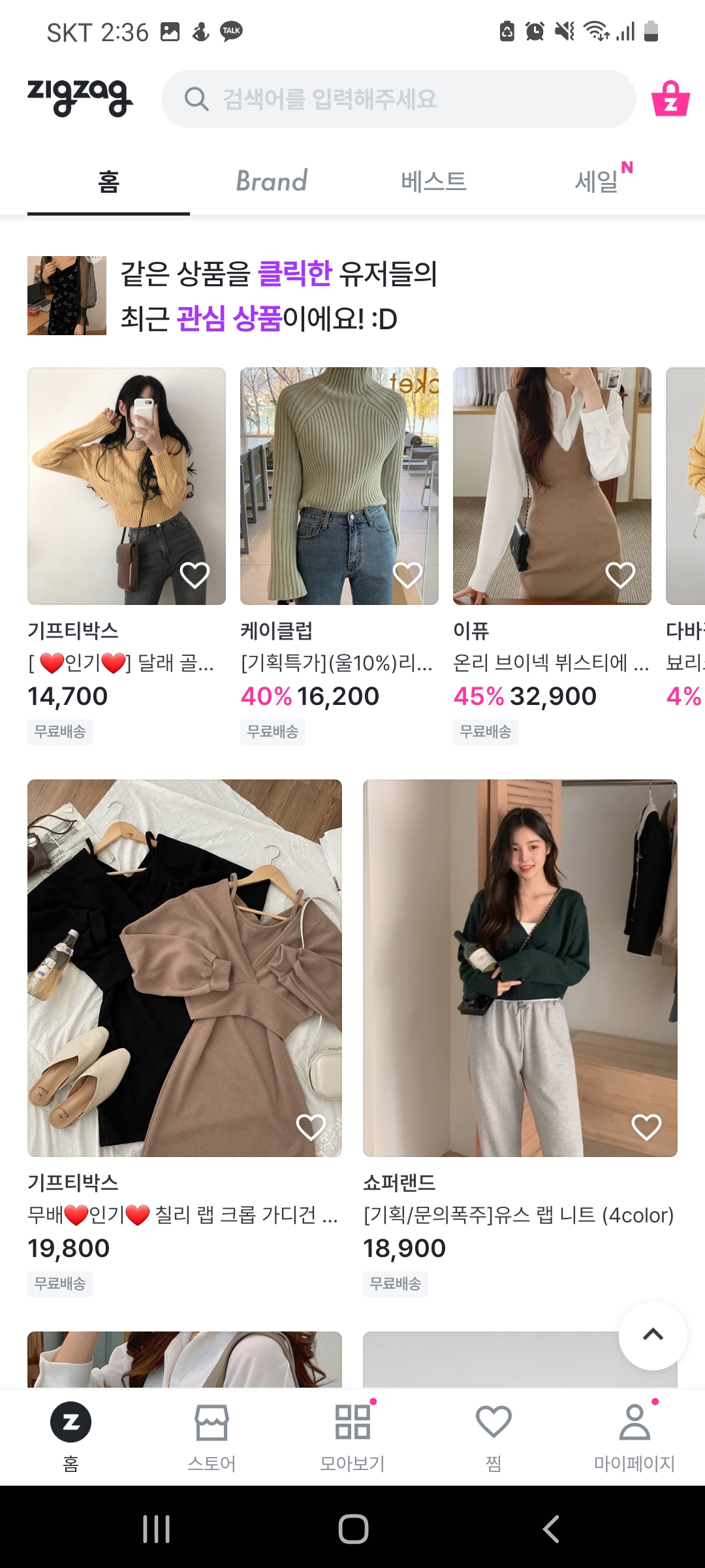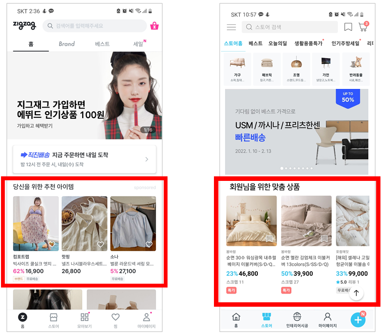 그 결과 홈 부분에 '같은 상품을 클릭한 유저들의 최근 관심 상품'을 소개해주기도 하고, 즐겨찾기에서 추가한 스토어와 유사한 추천 스토어를 안내하기도 한다.
