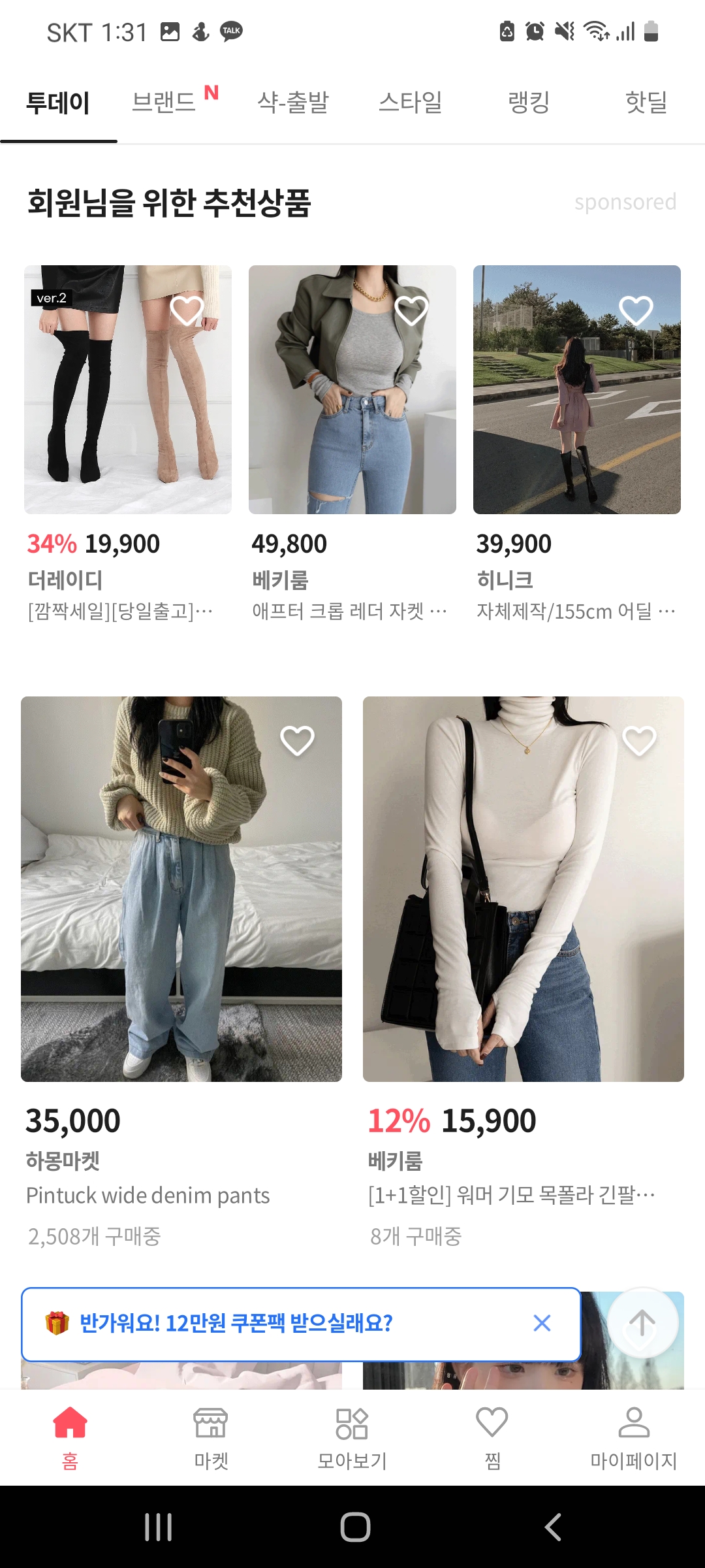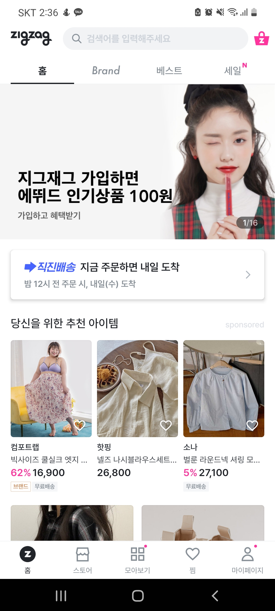 → 자신의 스타일을 고르면 취향에 맞는 상품을 찾아주고, 그 결과 메인 홈에서 추천 상품을 다수 확인할 수 있다.