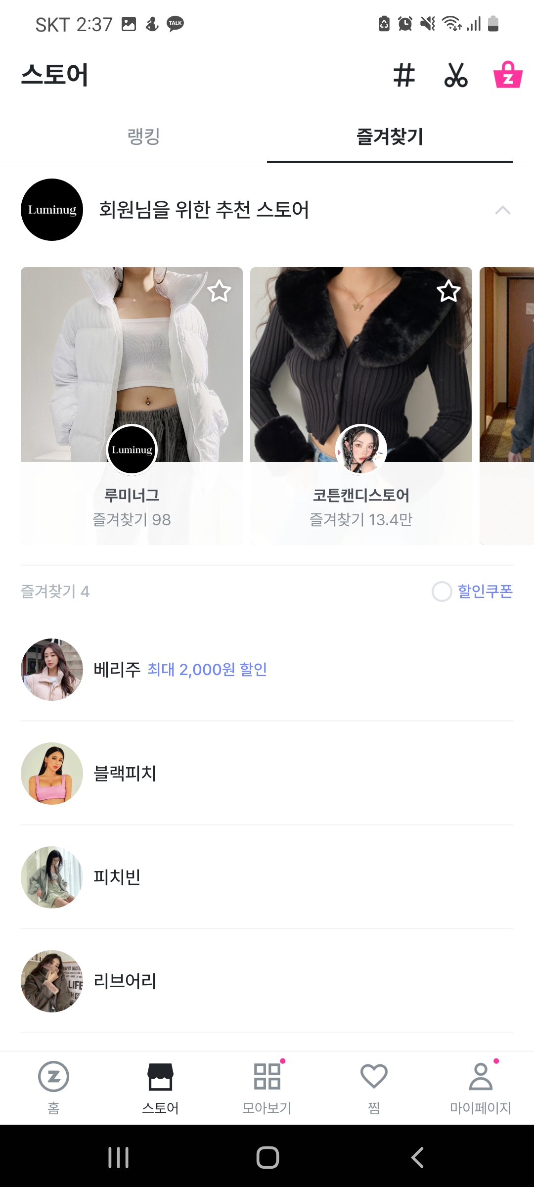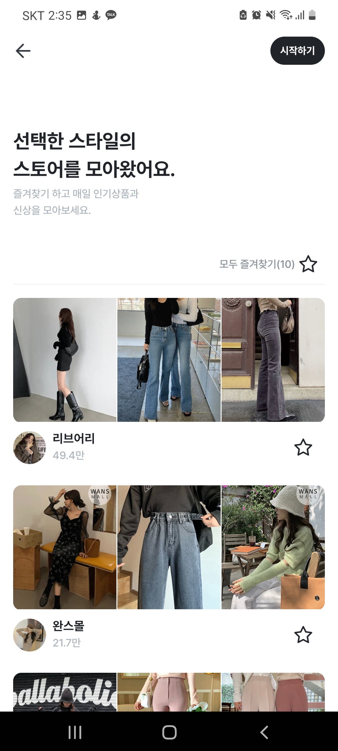 → 스타일 선택을 완료하고나면 선택한 옷이 있는 스토어를 즐겨찾기 할 수 있도록 만드는 단계가 있다.