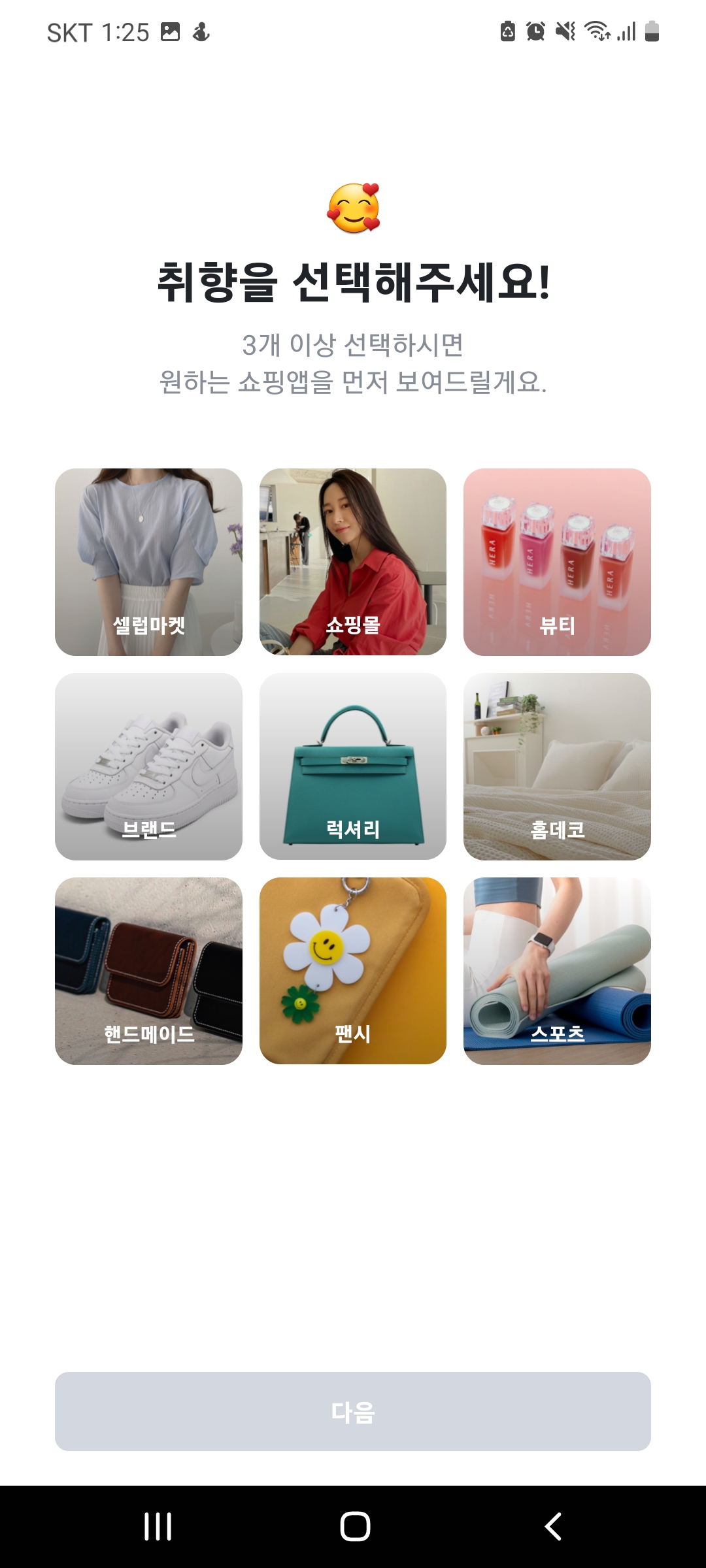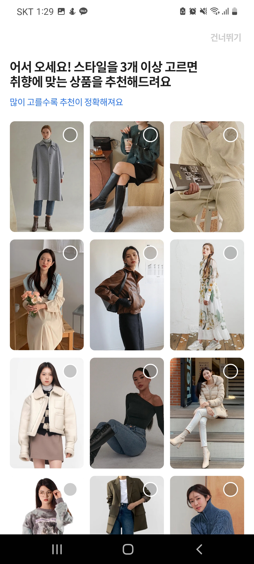 '스타일을 3개 이상 고르면 취향에 맞는 상품을 추천해드려요'