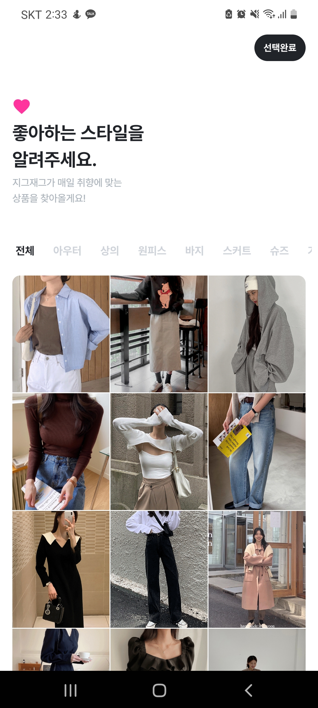 → 여러 옷 사진을 제공하고 이 중에 마음에 드는 스타일을 선택하게끔 한다.