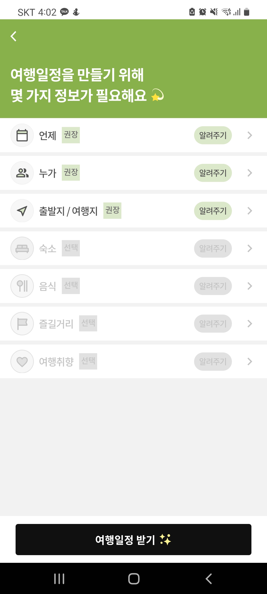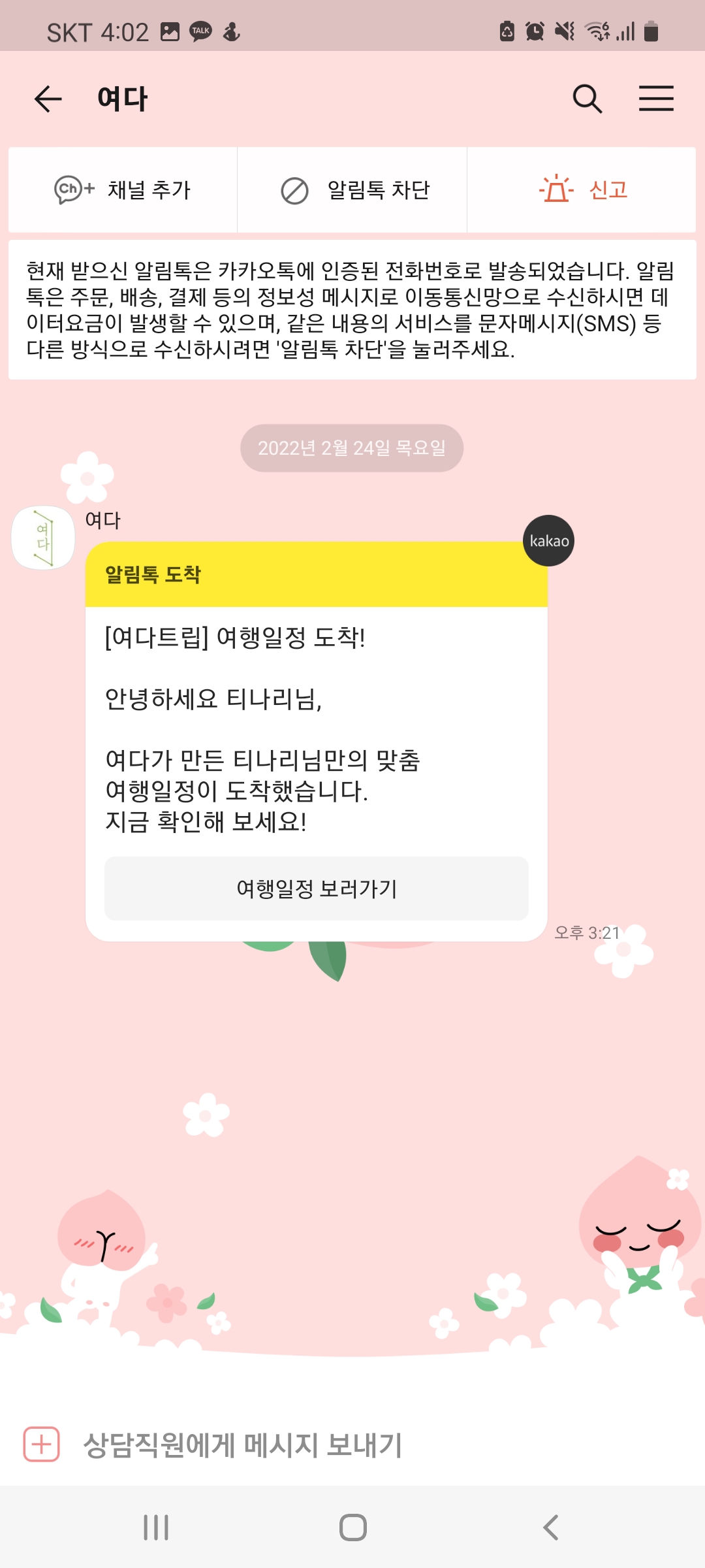 ✔️카카오톡 알림 받기 및 여행일정 확인